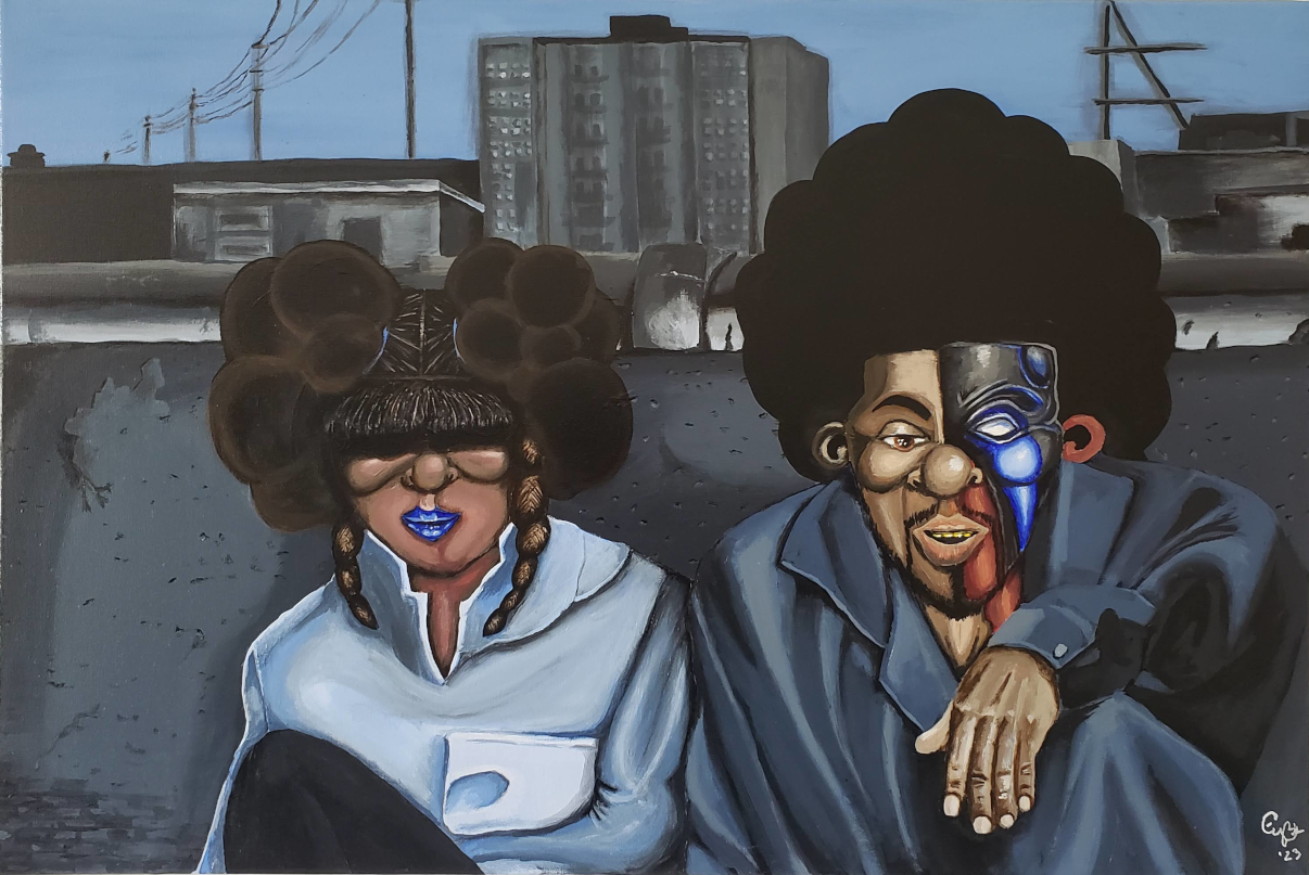 This painting depicts the Coco & Meeks characters in place of method Man and Mary J. Blige in a scene from the video for their iconic 90"s Hiphop love song 'All I Need'. The artwork showcasing this duo is all about showing the nature of a real couple"s love story from the man"s perspective, and this video lives in the back of every man who grew up through the 80"s and 90"s Hiphop culture.