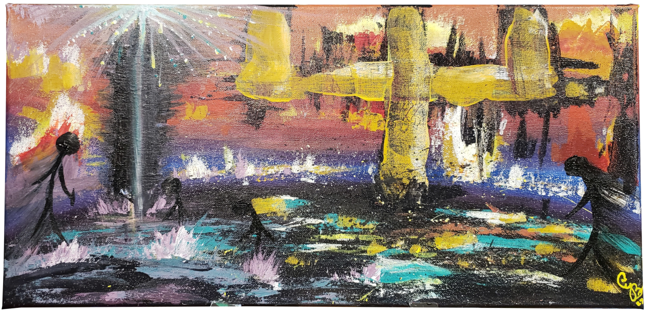 This painting tells the story of walking through the darkness to get to the light. I have a specific story that this applies to for me, but I prefer to leave its meaning open to interpretation to let the viewer apply it to whatever specific meaning they desire.