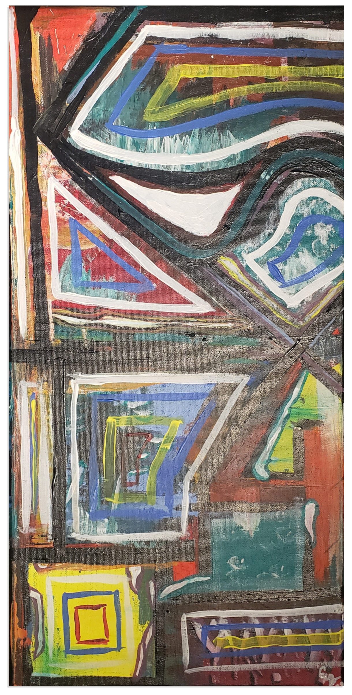 1-4-3 is the numeric representation for 'I Love You'. In that numeric representation, four is the number of 'love'. As an artist who uses my talent to share love with the world, this is a simple, abstract piece that subtly shares that message.
